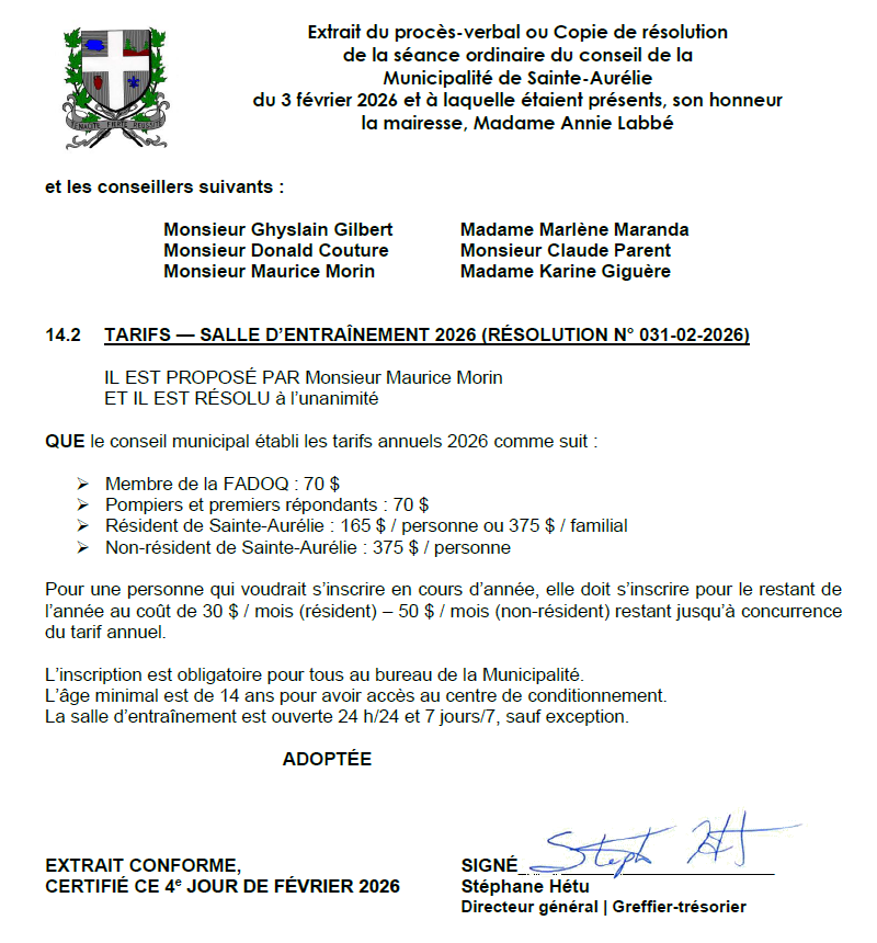 Tous droits réservés © 2026 Municipalité de Sainte-Aurélie